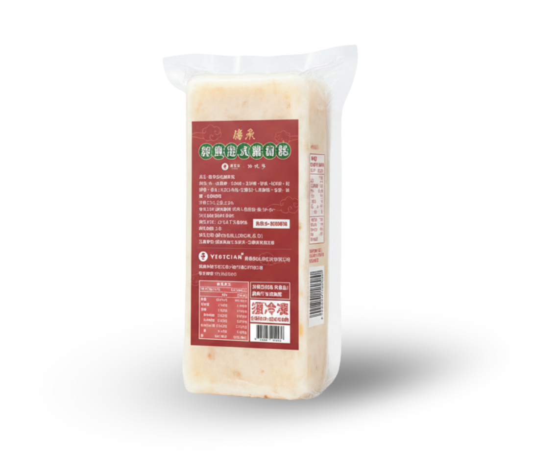 成分:水 、 白蘿蔔 、 在來米 、 玉米粉 、澄粉 、地瓜粉 、 紅砂糖 、 香油 (大豆沙拉油、芝麻油)、味精 、 乾香菇 、 海鹽 、 白胡椒粉